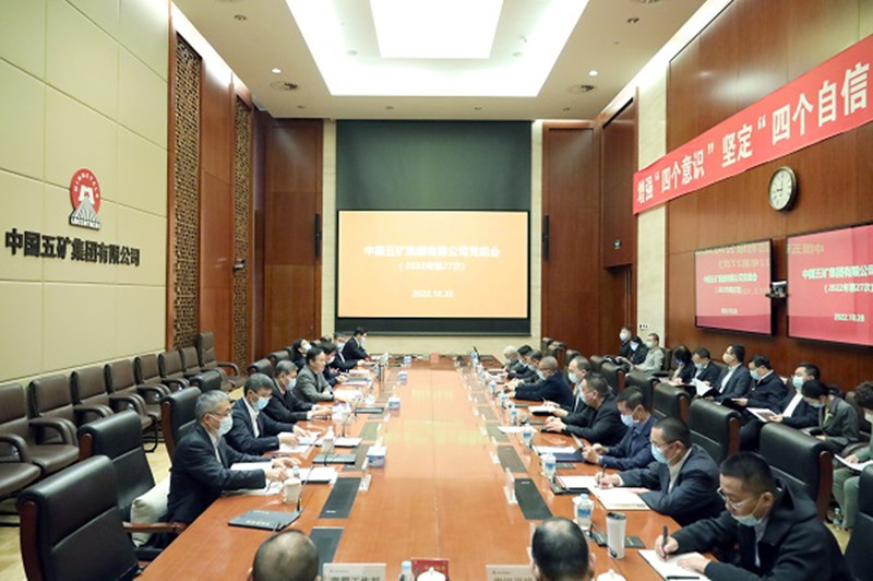 中國五礦黨組10月28日召開專題會議,深入學習領會習近平總書記在黨的二十大期間和二十大前后發表的系列重要講話精神,研究部署全系統學習宣傳貫徹黨的二十大精神相關工作。集團公司黨組書記、董事長翁祖亮主持會議并講話。總經理、黨組副書記國文清及黨組其他成員出席會議并發言。